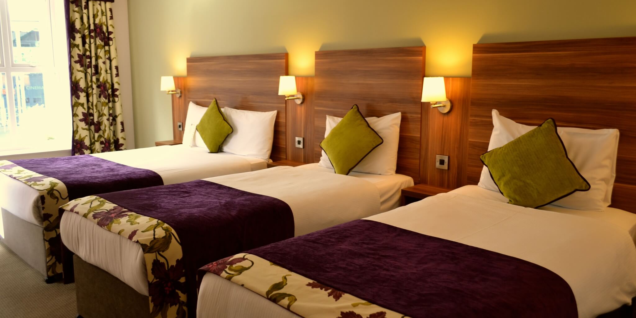 A triple room is a hotel room that is made to comfortably accommodate three people. The triple room , simply called a triple, at times, may be configured with different bed sizes to ensure three hotel guests can be accommodated comfortably.